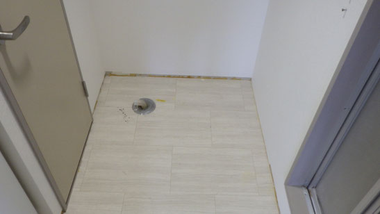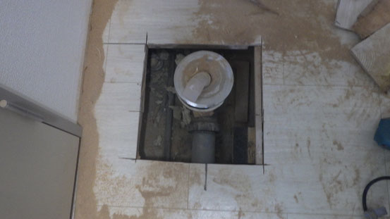 現状は排水トラップが床に取り付けられていましたが、万が一のために洗濯パンに変更します。